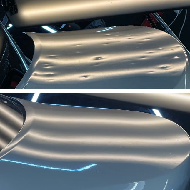 Îndreptarea caroseriei fără revopsire, în general, grindina/ lovituri de portiere/parcare, unde nu este afectată vopseaua, o îndreptăm fără nevoia de revopsire/kituire.